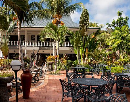 Hotellet ligger i den lilla kustbyn Anse Réunion, på gångavstånd från stranden där du kan uppleva en magisk solnedgång. Ön har många paradisiska stränder, inklusive den världsberömda Anse Source d’Argent – ofta utsedd till en av världens vackraste stränder – som enkelt kan nås med cykel från hotellet.