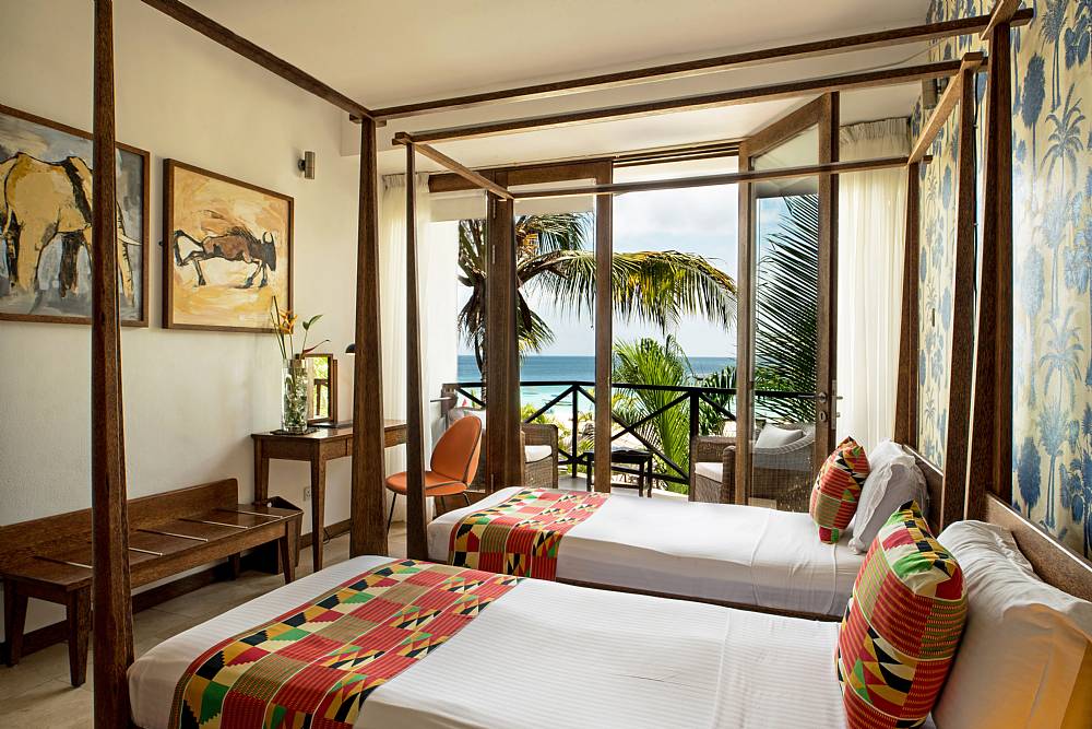 Hotellet har en modern och elegant design med inslag av traditionell zanzibarisk arkitektur. Rummen och sviterna är rymliga, välutrustade och smakfullt inredda med lyxiga bekvämligheter och egen balkong eller terrass med utsikt över det Indiska oceanen eller de frodiga trädgårdarna.