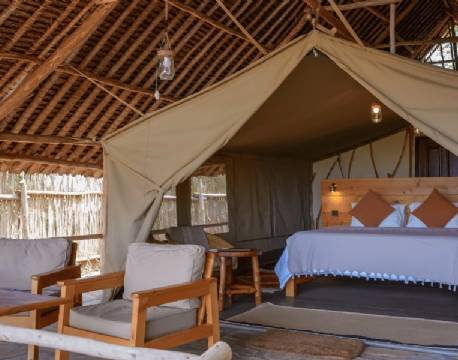 Campen erbjuder både standardtält och sviter. Sviterna ligger närmast vattenhålet och erbjuder extra utrymme och komfort.