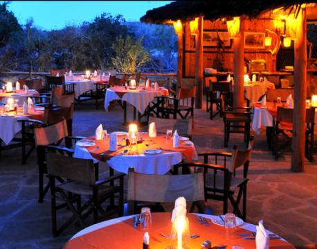Maten är en upplevelse i sig. Campens kockar lagar välsmakande rätter av färska råvaror, och du kommer snabbt att glömma att du befinner dig mitt i bushen. Lunchen serveras ofta under ett imponerande, över 200 år gammalt tamarindträd med utsikt över vattenhålet, medan middagen avnjuts i restaurangen – ofta följt av drinkar vid lägerelden under den afrikanska stjärnhimlen. Privata middagar och bush dinners kan också arrangeras.