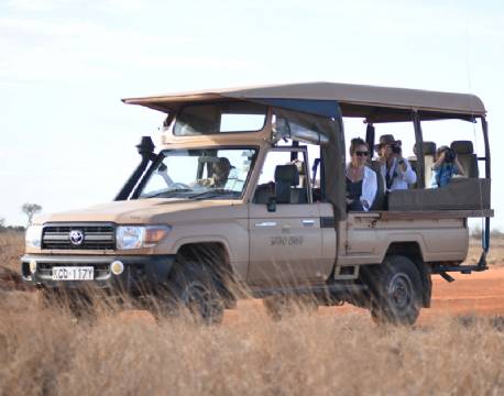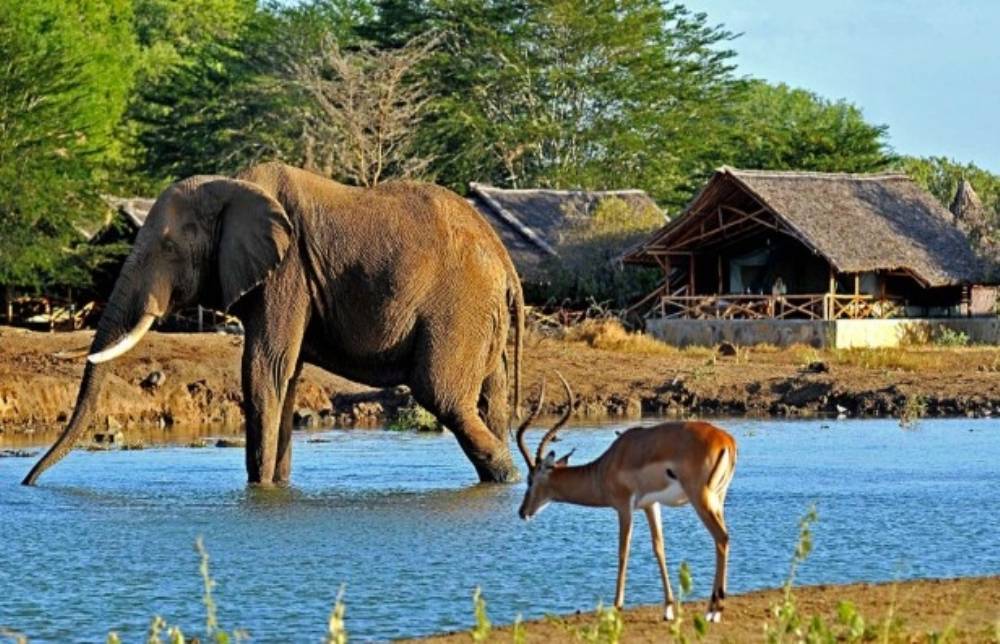 Tsavo East bjuder på ett varierat landskap med öppna slätter, akaciaskog, floder och frodig bush – samt ett rikt djurliv. Området är särskilt känt för sina stora elefantflockar, ofta rödaktiga av det fina dammet de badar i. Vid livliga dagar kan vattenhålet vid Satao Camp locka upp till 1 000 elefanter, vilket gör vistelsen oförglömlig. Här finns även lejon, leoparder, giraffer, zebror, bufflar och ett imponerande fågelliv med hundratals arter.