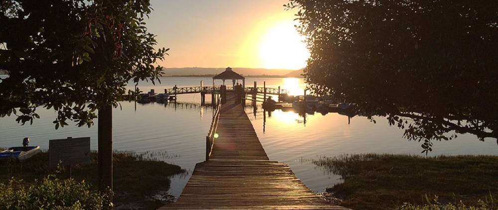 Huvudbyggnaden på Belvidere Manor innehåller ett bibliotek, kök och restaurang där alla måltider avnjuts, och om vädret tillåter, äter man gärna utomhus på terrassen med den fantastiska utsikten över trädgården och lagunen.