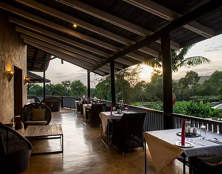 Boendet är med helpension – alla måltider och drycker ingår. I huvudbyggnaden finns restaurangen, som serverar smakrika rätter tillagade med färska råvaror från gården. Här hittar du också en stor terrass med fantastisk utsikt över Ngorongoros högland – och ned mot den klarblå utomhuspoolen omgiven av solsängar och parasoller.