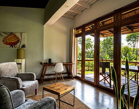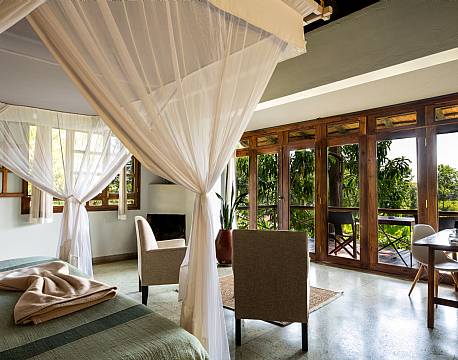 Lodgen har 20 charmiga stugor, omgivna av lummiga trädgårdar, kaffeplantager och en bondgård. Här kan du njuta av naturens lugn i rogivande omgivningar. Varje stuga har privat terrass eller balkong, och stora fönster som ger ett härligt ljusinsläpp och vacker utsikt. Inredningen förenar modern bekvämlighet med traditionellt tanzaniskt hantverk.
